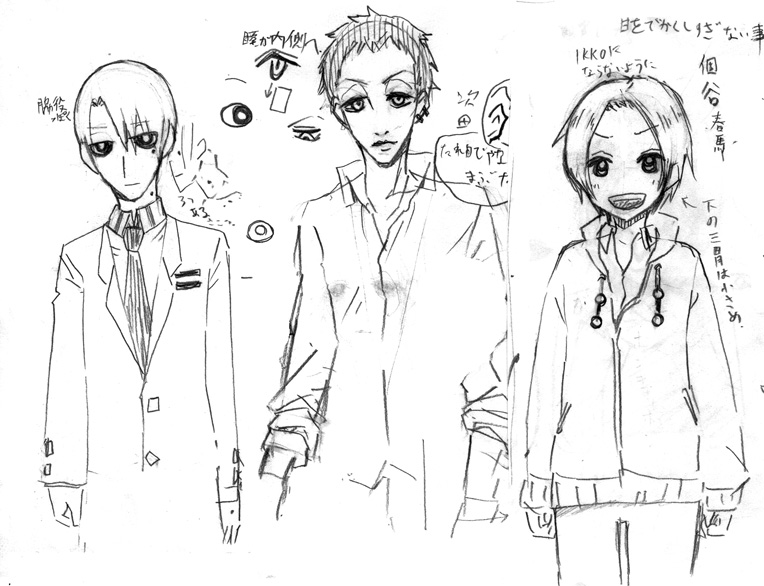 男たち初期ラフ、みんなオデコ出してる