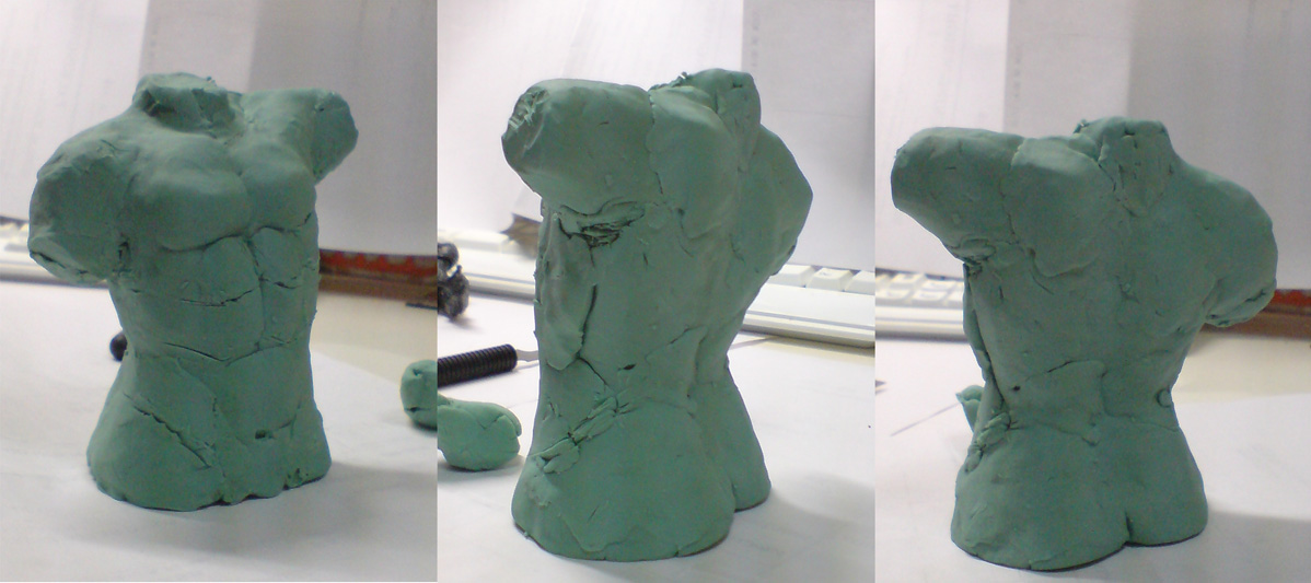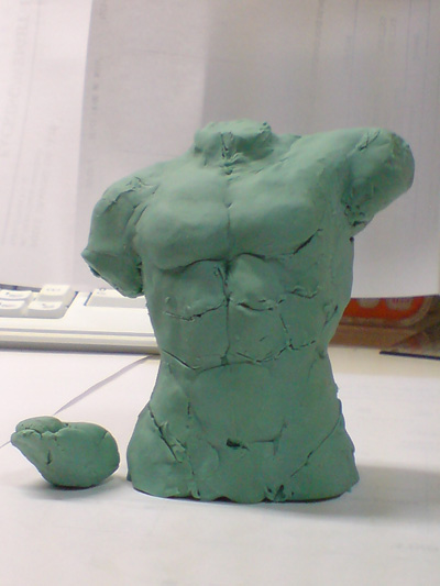 今日は立体造形に挑戦。粘土を使って胴体を作ってみました。