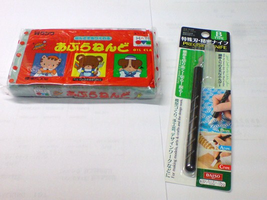 あぶら粘土200円とカッター100円