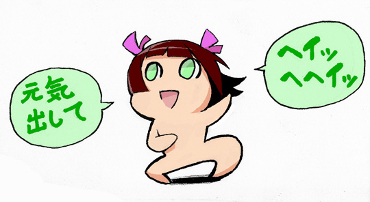 色塗って頭部、瞳、左腕あたりのデッサンがゆがんでる事に気づいた。