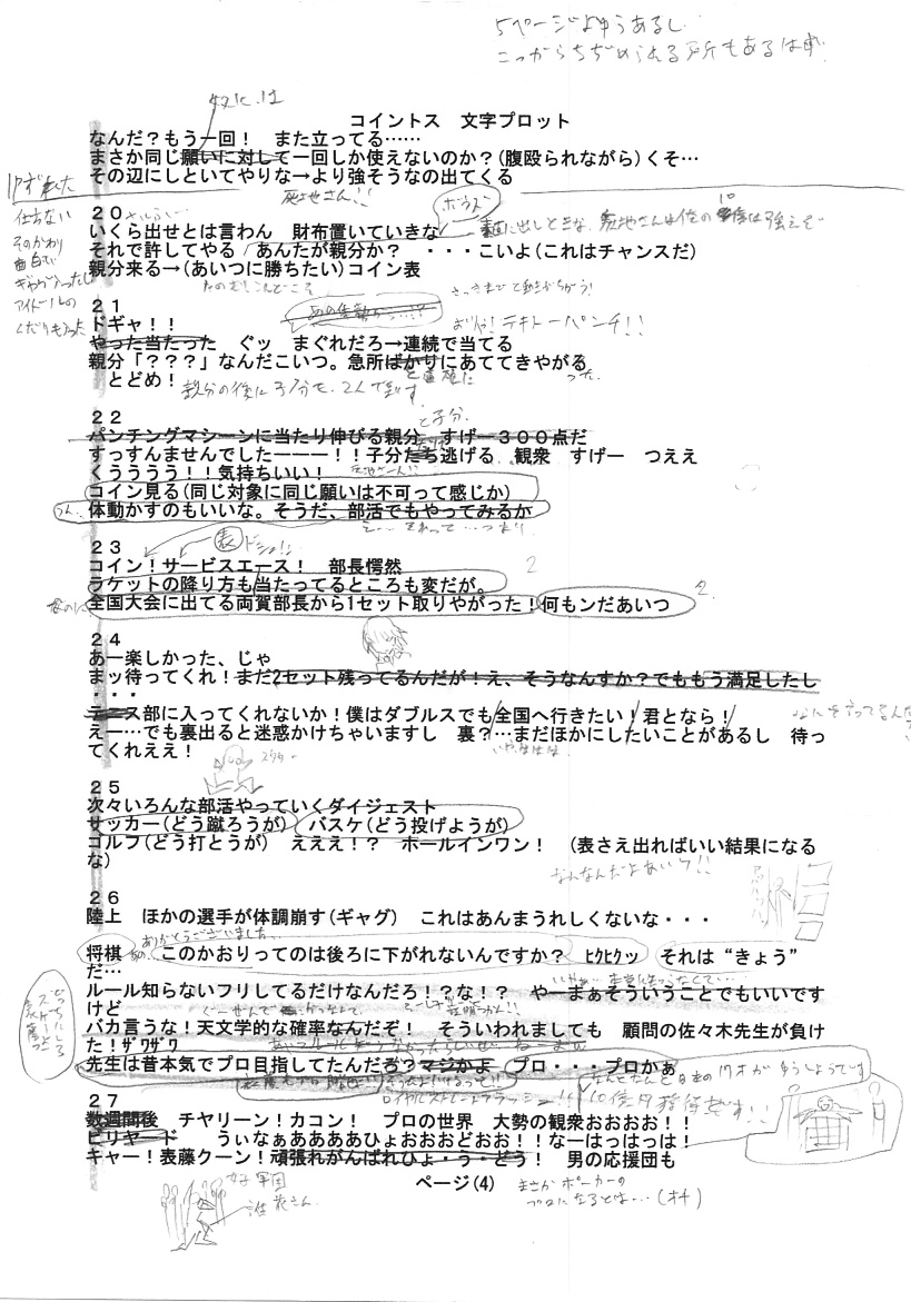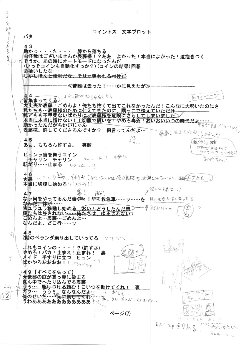 追い討ちコイントスは、PCのメモ帳でプロットを作ってみました。